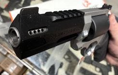 This new Taurus Raging Hunter chambered in 500 S&W has a 5 shot cylinder, black 5.1" ported barrel, stainless frame , black cylinder , optic ready rail, and open sights. Insured shipping is $45.00 to the continental U.S. where allowed and no card fees added at Deals on Guns. Taurus website; The Raging Hunter is now available in the most powerful factory revolver round: The 500 Magnum! Hunters have been asking for their favorite revolver in 500 Magnum, and now it’s here. This Raging Hunter comes with all the features you’re used to, but now with all the terminal ballistics of the 500 Magnum. The 500 Magnum Raging Hunter is available in 5, 6.75, and 8 inch barrel lengths, and features custom barrel ports to help reduce the recoil of 500 Magnum. With a 5 round capacity, the 500 Magnum Raging Hunter is the perfect companion as a backup gun for dangerous game hunts, or a primary gun for anything that walks on 4 legs.